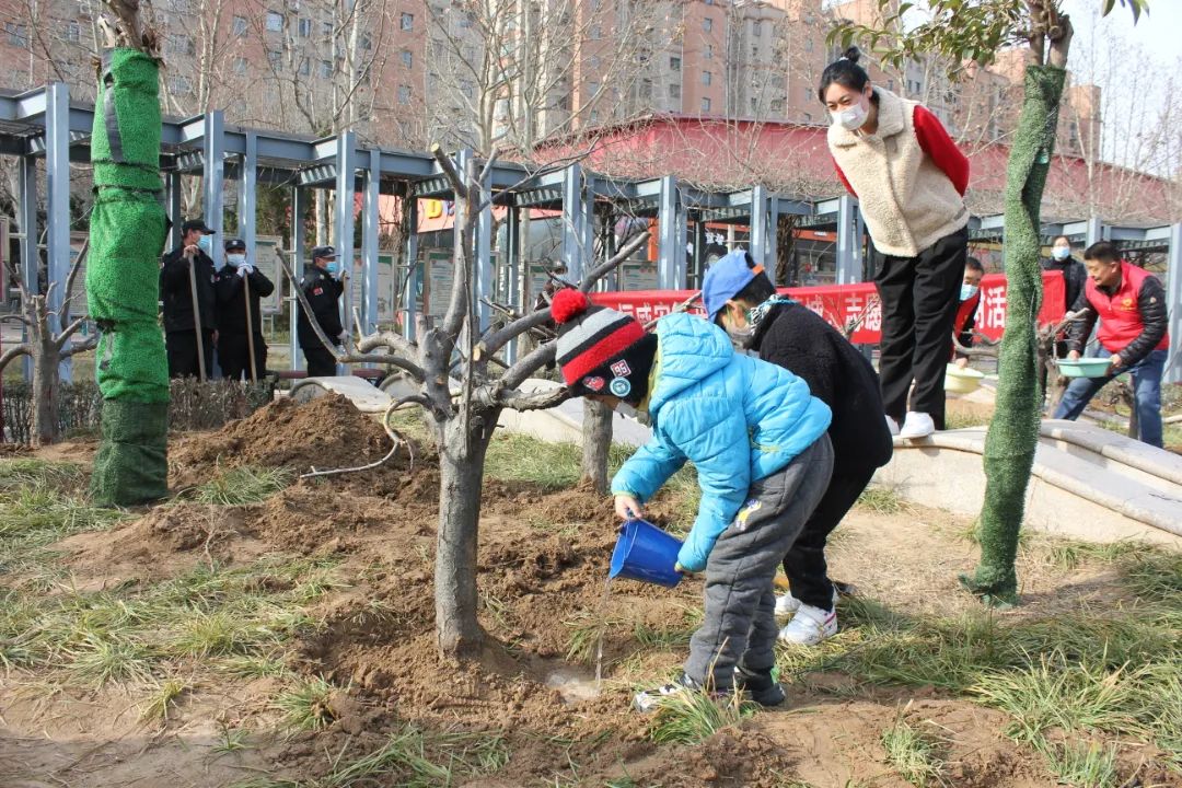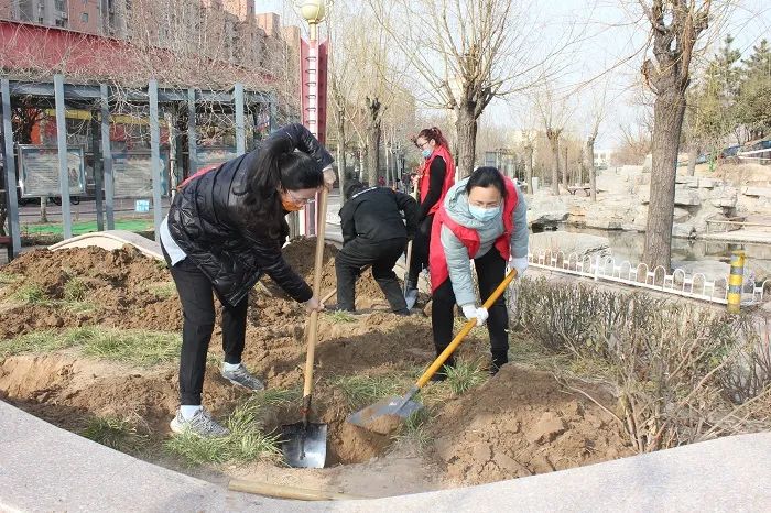 當天,志愿者身穿紅色志愿服,(更讓人興奮的是,參加此次活動的還有我們的小天使—孩子們)一起興高采烈地到活動地點—婦女兒童活動中心共同見證綠色復蘇、造福天下的偉業。活動現場,王新衛拿著鐵鍬,沖在前頭,在他的帶動下,大家揮锨鏟土、扶苗填坑、踏土固根,道道工序細致認真,各個環節銜接有序,志愿者們充分發揚不怕苦不怕累的作風,分工合作、齊心協力,個個熱情高漲、干勁十足。尤其我們的小天使也積較參與、不甘落后,使出渾身解數,忙得不亦樂乎。經過努力,一棵棵新栽的小樹迎風而立,展示出勃勃生機。