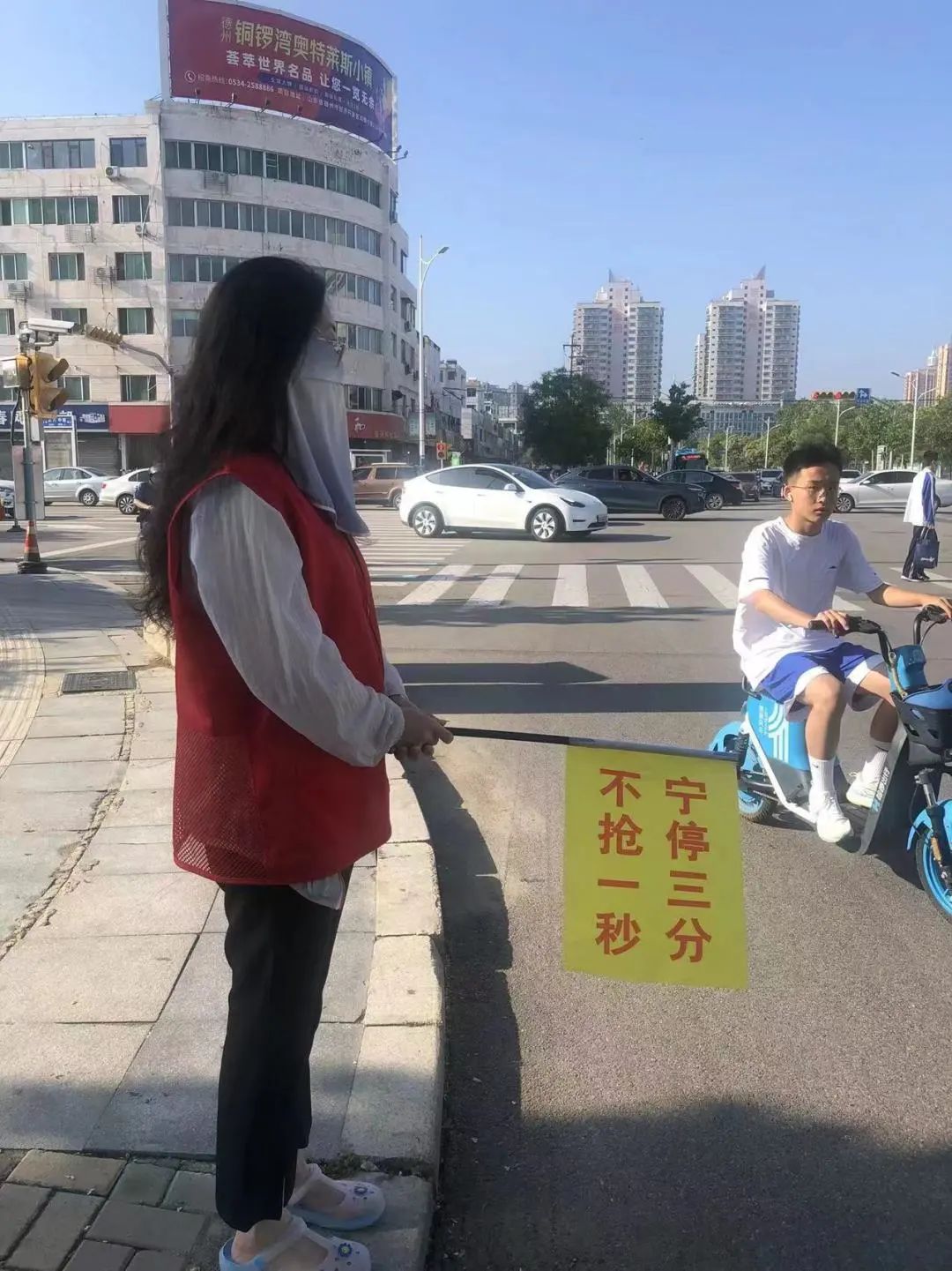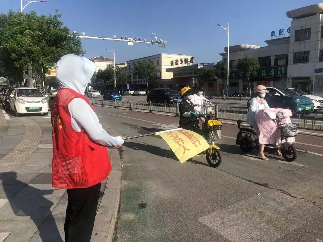 7月7日,連日降雨后的德州市開(kāi)啟悶熱的“蒸煮”模式。身著“紅色馬甲”的志愿者們提前到達(dá)九中路口,烈日炎炎下,他們積較協(xié)助交警指揮疏導(dǎo)行人、非機(jī)動(dòng)車;勸阻行人、非機(jī)動(dòng)車闖紅燈等交通違法行為;宣傳引導(dǎo)行人文明行路;宣傳引導(dǎo)非機(jī)動(dòng)車安全文明騎行;宣傳引導(dǎo)機(jī)動(dòng)車行經(jīng)過(guò)人行橫道時(shí)減速避讓行人;扶助老、幼、殘疾人安全文明行路,并熱情為外地駕駛?cè)恕⒂慰吞峁┳稍兎?wù)等。