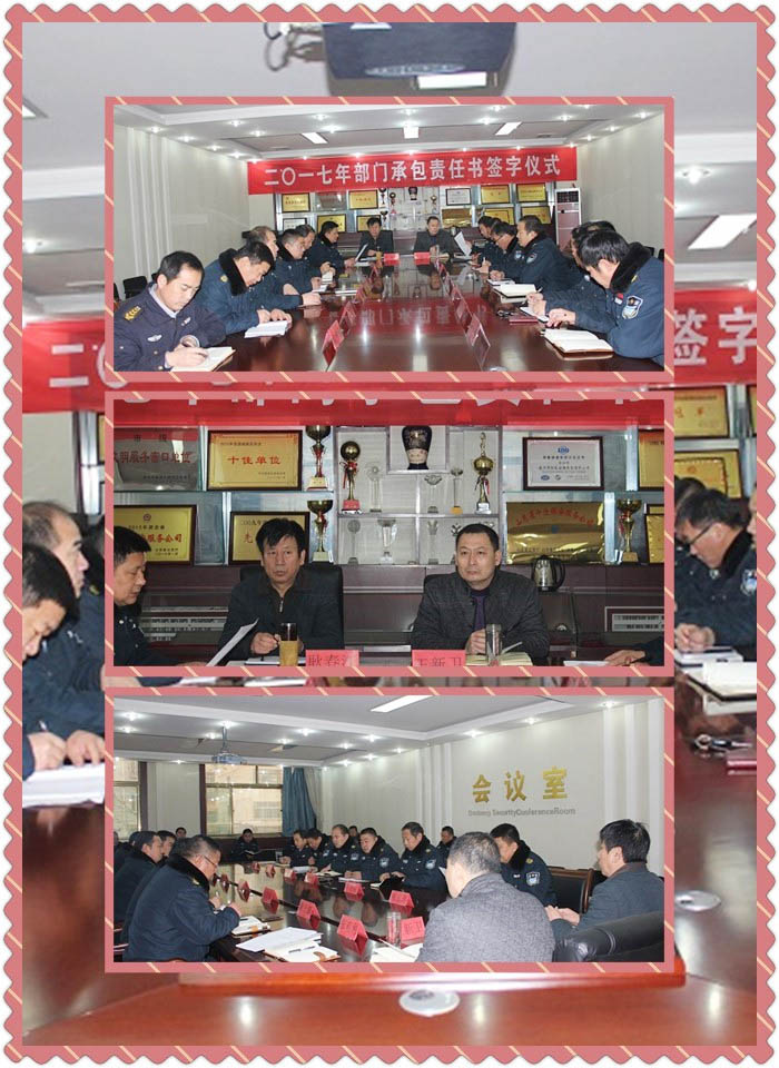 會議進行三項內容,一簽訂目標責任書。大隊與各中隊分別簽訂2017年目標責任書,通過簽訂目標責任書強化中隊的責任、明確目標方向,提升了人員的積極性,實現年工作任務打下基礎。二實行獎懲機制,加強隊伍建設,促進業務發展。根據今年完成目標任務情況,大隊采取獎懲辦法,對任務目標完成好的中隊長及班長進行升職加薪,有力的提高了大家的工作積極性,為今后的業務拓展奠定了堅實的基礎。三大隊全年工作的總結。總結會上,王經理充分肯定了2016年二大隊的工作成績。他指出二大隊全年圍繞保安市場,堅持主業為主、多種經營方式并存的發展模式,不斷拓寬保安市場,取得了可喜可賀的成績。在隊伍建設上,規范機構設置,分工明確,各負其責。另外不斷加強隊員崗前培訓,崗中教育指導,著實提升了隊伍的“外在形象、內在素質”。同時也著重分析了存在的問題和不足。他說2017年我們要圍繞主業,進一步放大優勢,再接再厲,率先發展,抓好隊伍、帶好班子,適應新形勢,保持清醒頭腦,克服慣性思維,增強創新,優化主業,強化他業,推動業務、隊伍提檔升級,實現雙贏的局面。