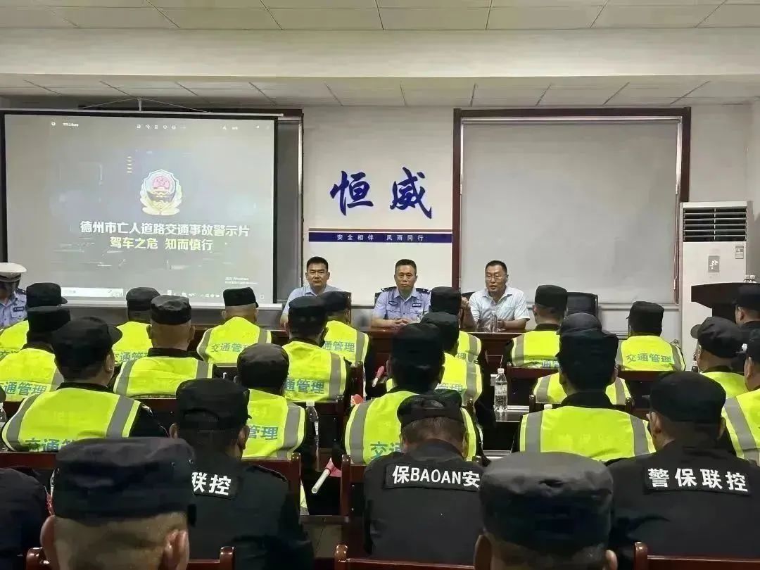 為進(jìn)一步提升交通協(xié)管員的政治素質(zhì)和業(yè)務(wù)水平,切實(shí)預(yù)防和減少道路交通安全事故的發(fā)生。6月24日下午,德州市恒威安保服務(wù)有限公司聯(lián)合交警一大隊(duì)開(kāi)展交通協(xié)管員交通安全培訓(xùn)活動(dòng)。交警一大隊(duì)副大隊(duì)長(zhǎng)王震出席活動(dòng)并發(fā)表講話(huà),公司副總經(jīng)理王洪林、高印東及60余名交通協(xié)管員參加活動(dòng)。