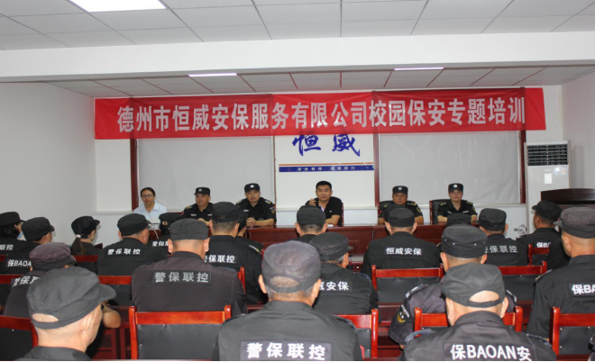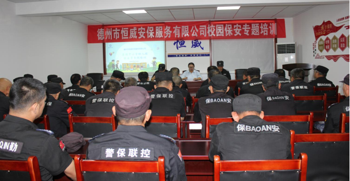 為貫徹落實德州市公安局、德州市教育和體育局《關于組織開展全市中小學幼兒園專職保安員培訓工作通知》要求,結合市公安局保安專題培訓,進一步提升中小學幼兒園專職保安員綜合素質,增強反恐防暴意識,提高校園保安員對突發暴力事件的應對能力,全力保障校園安全有序穩定。德州市恒威安保服務有限公司高度重視,立即安排部署相關工作。