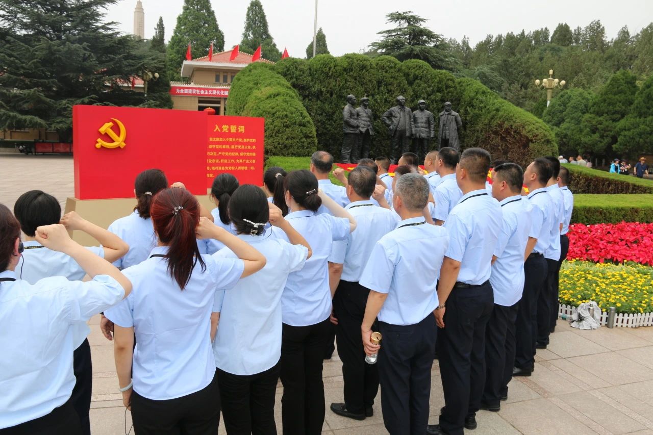 西柏坡紀念館廣場,面對鮮紅的黨旗,在黨支部副書記張玉濤的引領下,黨員們紛紛舉起右拳,莊嚴宣誓,“我志愿加入中國共產黨……”聲音鏗鏘,誓言豪邁,這一誓言不僅彰顯了全體黨員對黨的堅定信仰,更承載了他們對于黨的莊嚴承諾與責任擔當。