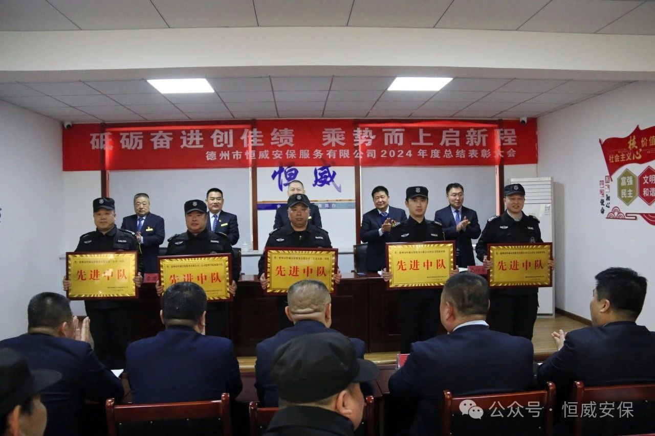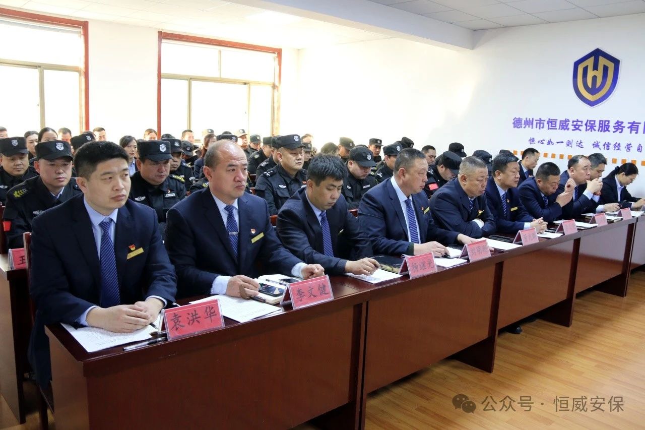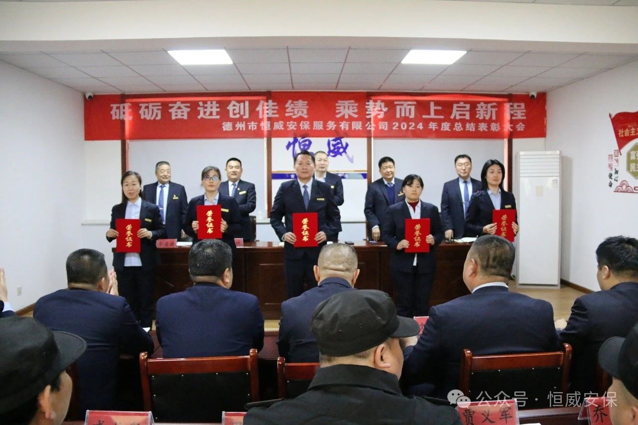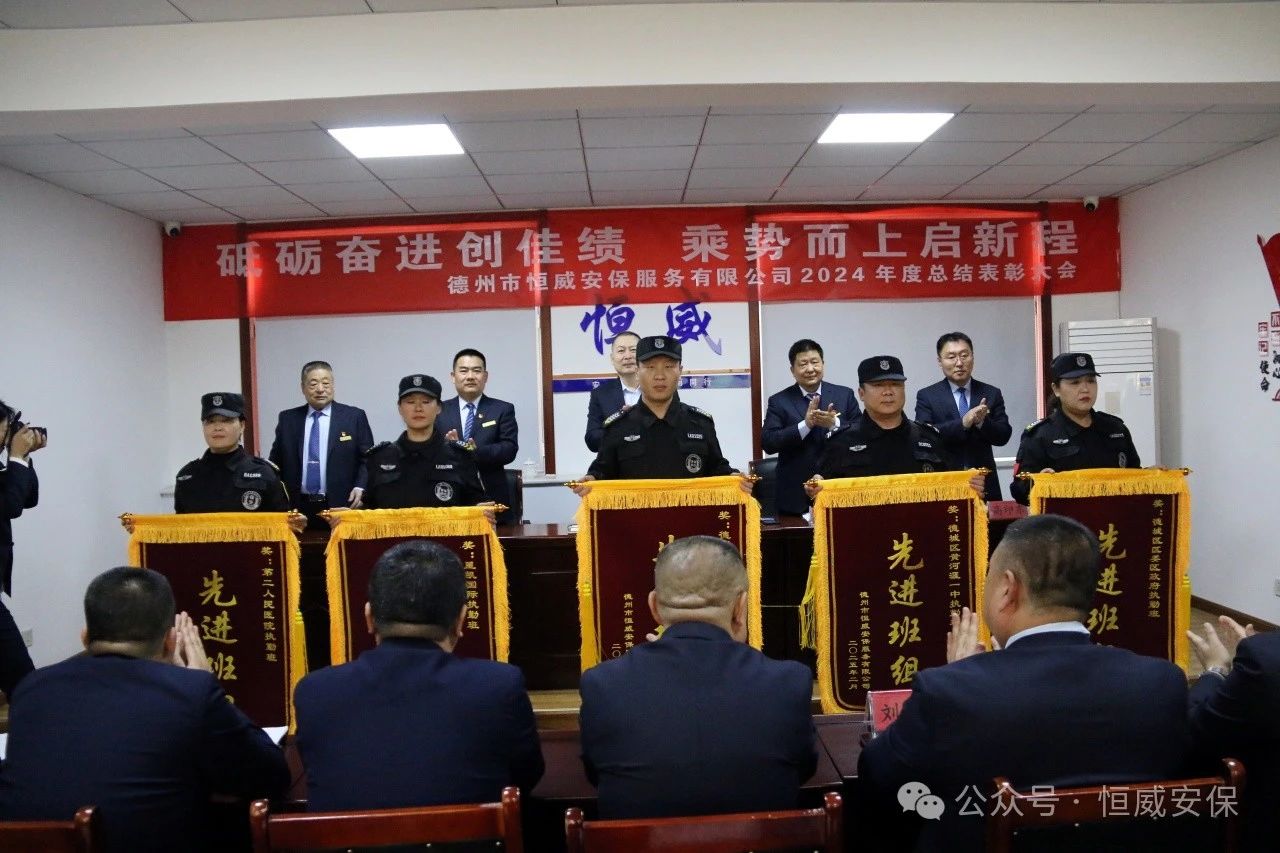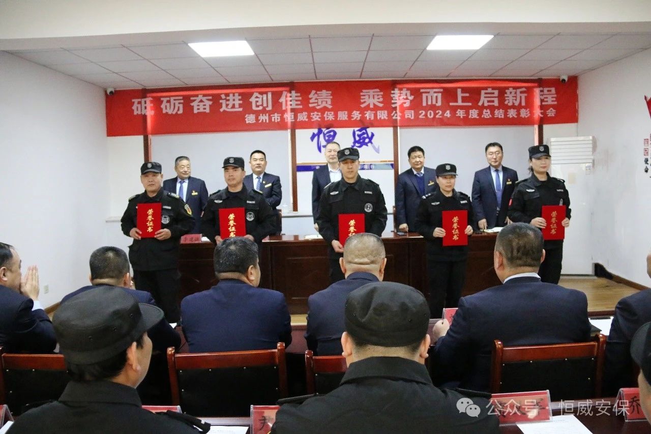 為表彰先進、激勵斗志,總結成績、展望未來,2025年2月19日上午,德州市恒威安保服務有限公司召開2024年度總結表彰大會,公司領導、各級管理人員以及獲得表彰的先進集體代表、優(yōu)秀管理者、優(yōu)秀班長、優(yōu)秀員工代表共60余人參加大會,會議由公司副總經(jīng)理張玉濤主持。